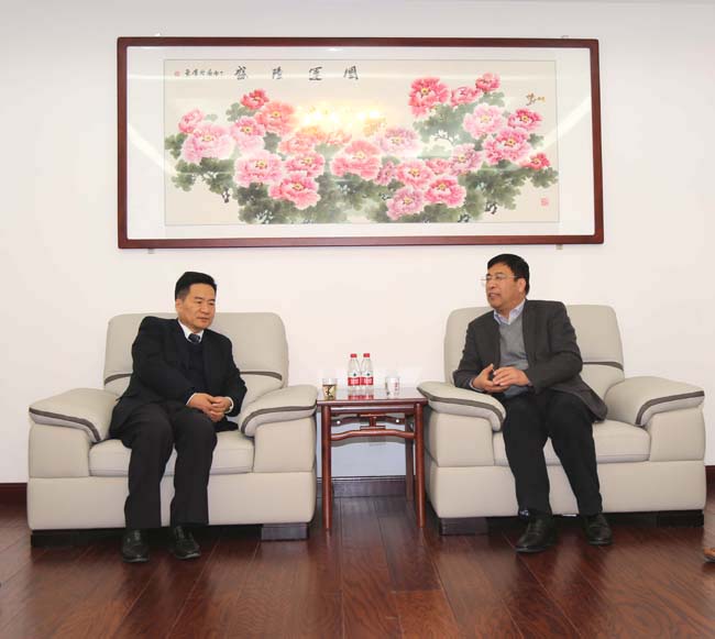 湖北省中星电子材料有限公司董事长赵中友、副总经理黄敏一行到万基控股集团洽谈合作。董事长李跃民等陪同。
