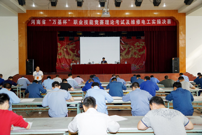 此次“万基杯”职业技能竞赛是河南省有色金属行业历届职业技能大赛中参赛选手最多、专业覆盖面最广、规格最高的一次比赛。决赛共有河南豫港龙泉铝业、洛阳豫港龙泉铝业、河南神火铝业、河南永登铝业、河南有色汇源铝业、河南中孚实业、开曼铝业(三门峡)、林州市林丰铝电、洛阳龙鼎铝业、洛阳龙泉天松碳素、洛阳香江万基铝业、陕县恒康铝业、商丘阳光铝材、万基控股集团、伊电集团洛阳工程公司、中国铝业股份有限公司河南分公司16家单位的铝电解烟气化工、叉车司机、金属轧制工、维修电工、氧化铝制取工5个工种189名选手参加,决赛分为理论知识笔试和实操考试。