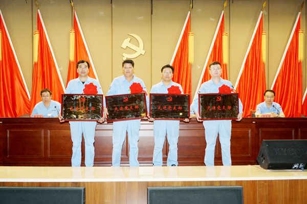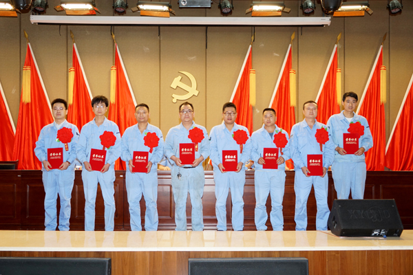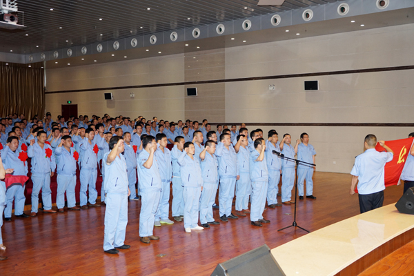 上午8时30分,身着蓝色工装的全体党员干部在激昂的国歌声中起立。15名新党员面对党旗庄严宣誓,光荣加入党组织行列。在“倒逼增效、争当先锋”活动中涌现出的27名优秀党员、4名优秀党务工作者、4个优秀党支部受到表彰。万基铝加工营销中心板带处业务员张功勋代表优秀党员、二铝电解一车间四区区长王国峰代表新党员分别作了典型发言。