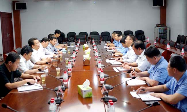 9月23日下午,中国铝业股份有限公司党组成员、高级副总裁刘祥民(左三)带队,到我公司洽谈氧化铝等业务合作事宜。集团公司领导李跃民、郭峰等陪同。