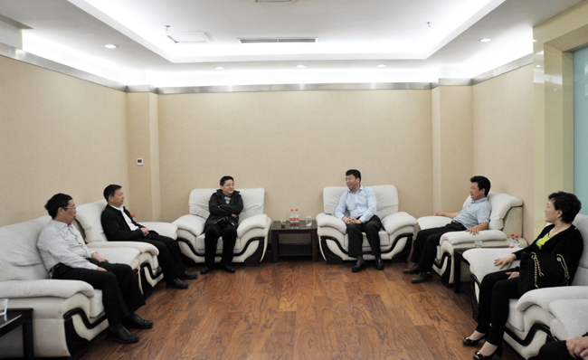 5月11日下午,洛阳市工商银行副行长吴伟(图左三)一行到公司调研,图为与李跃民董事长、王尚友副总经理在一起座谈。