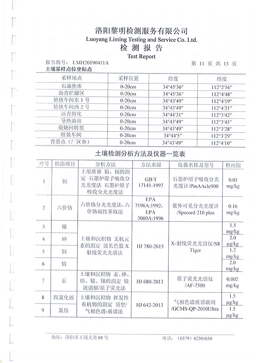 河南万基炭素有限公司(二分厂)土壤检测报告公示