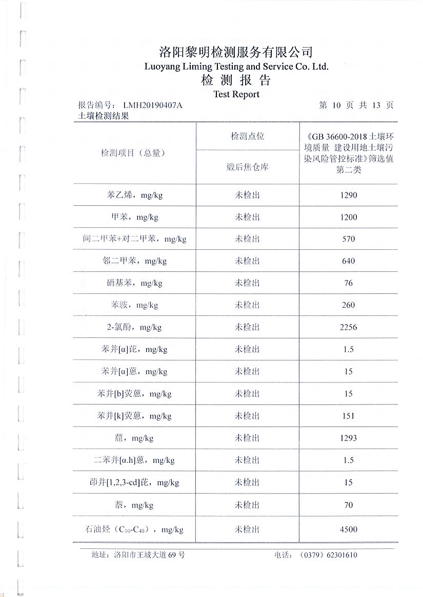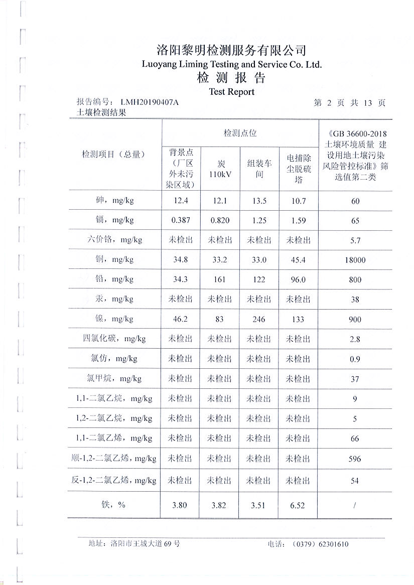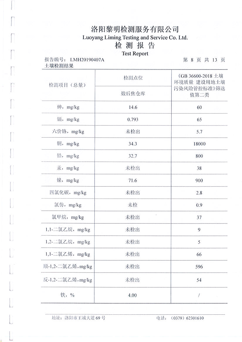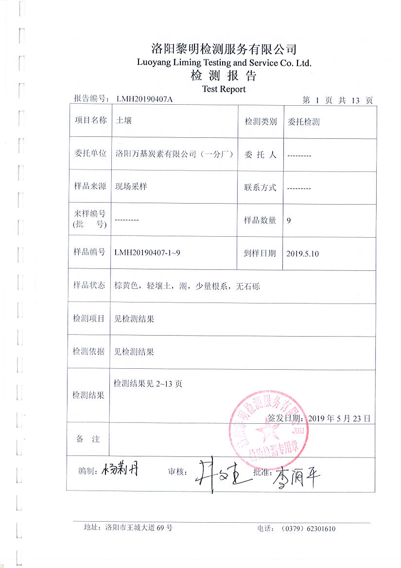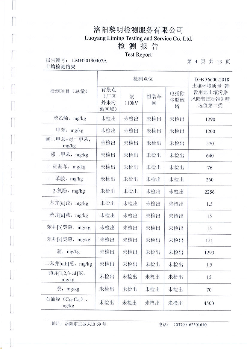 河南万基炭素有限公司(一分厂)土壤检测报告公示