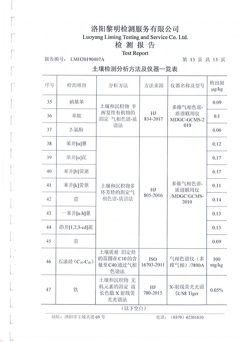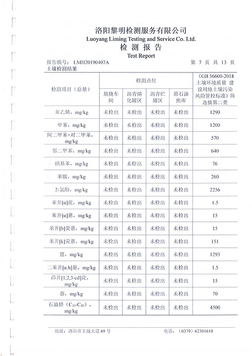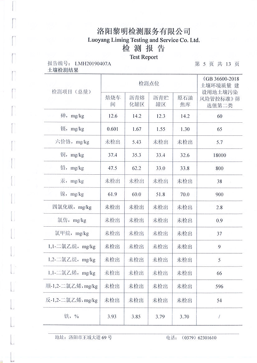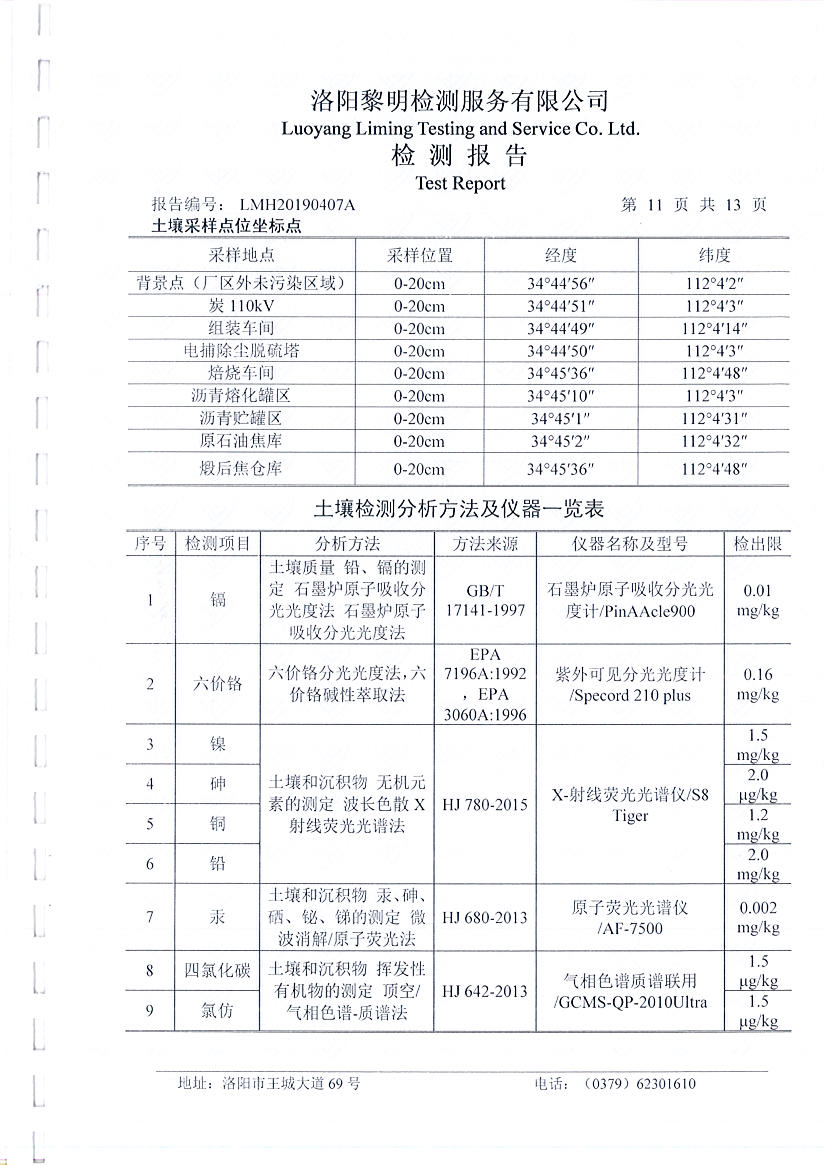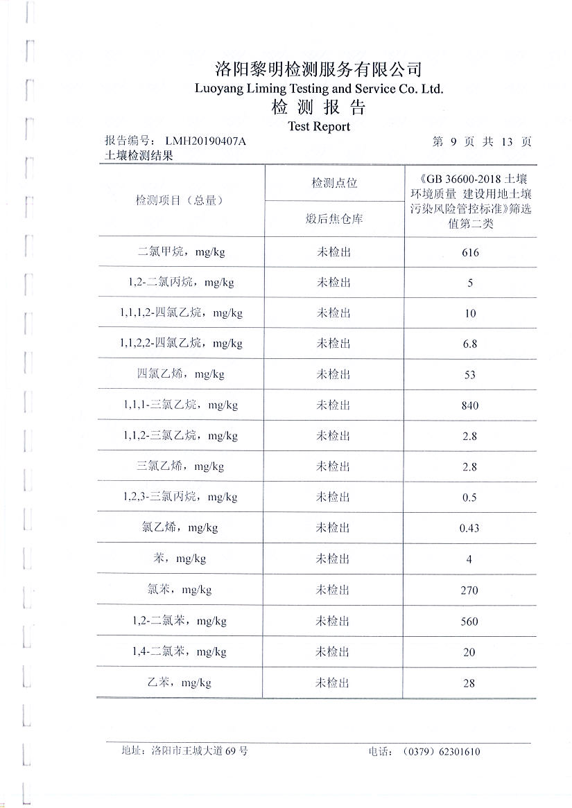 河南万基炭素有限公司(一分厂)土壤检测报告公示