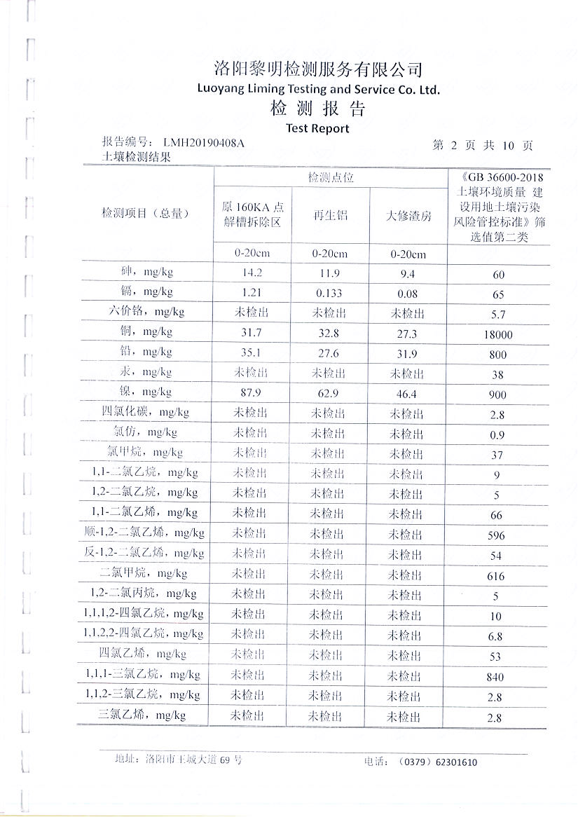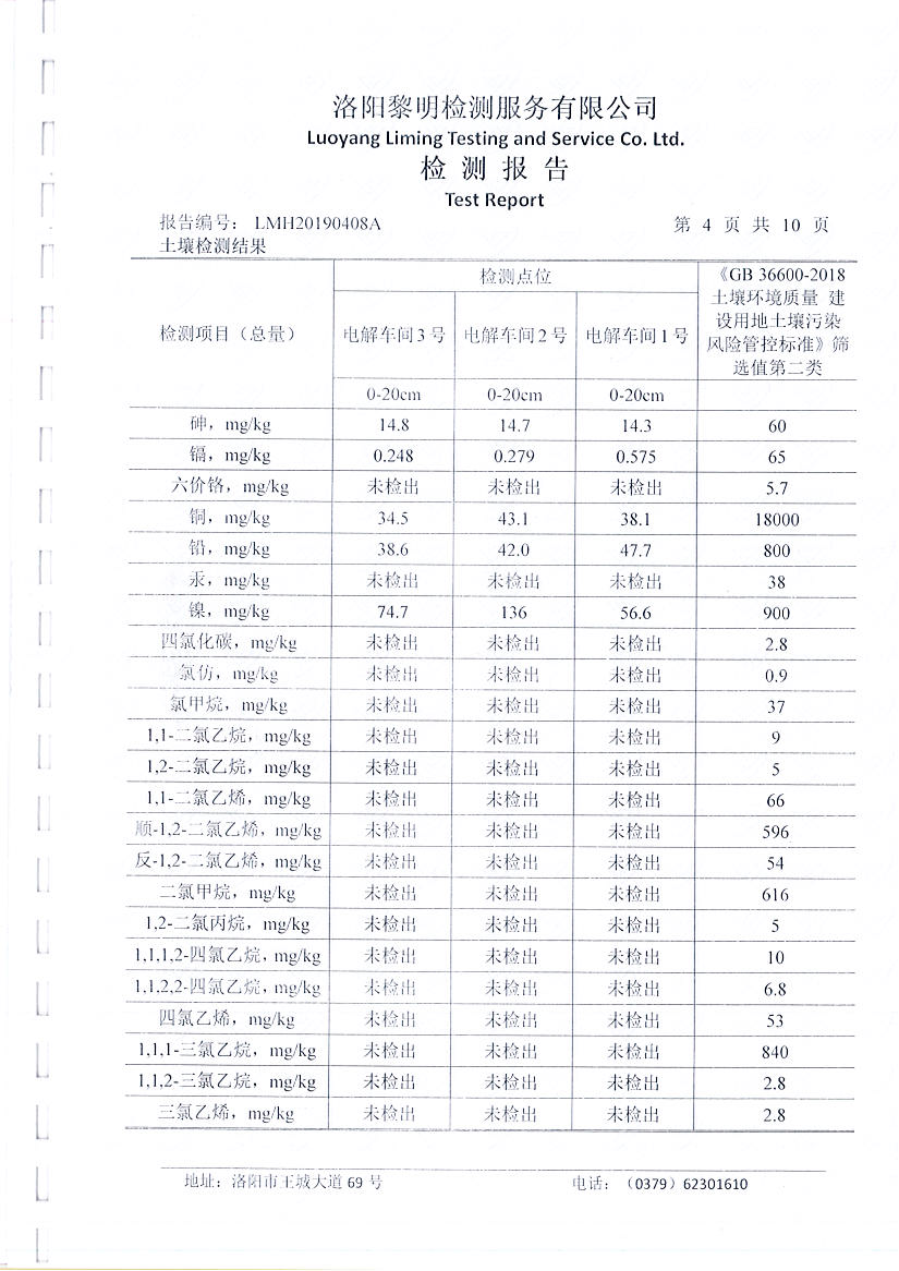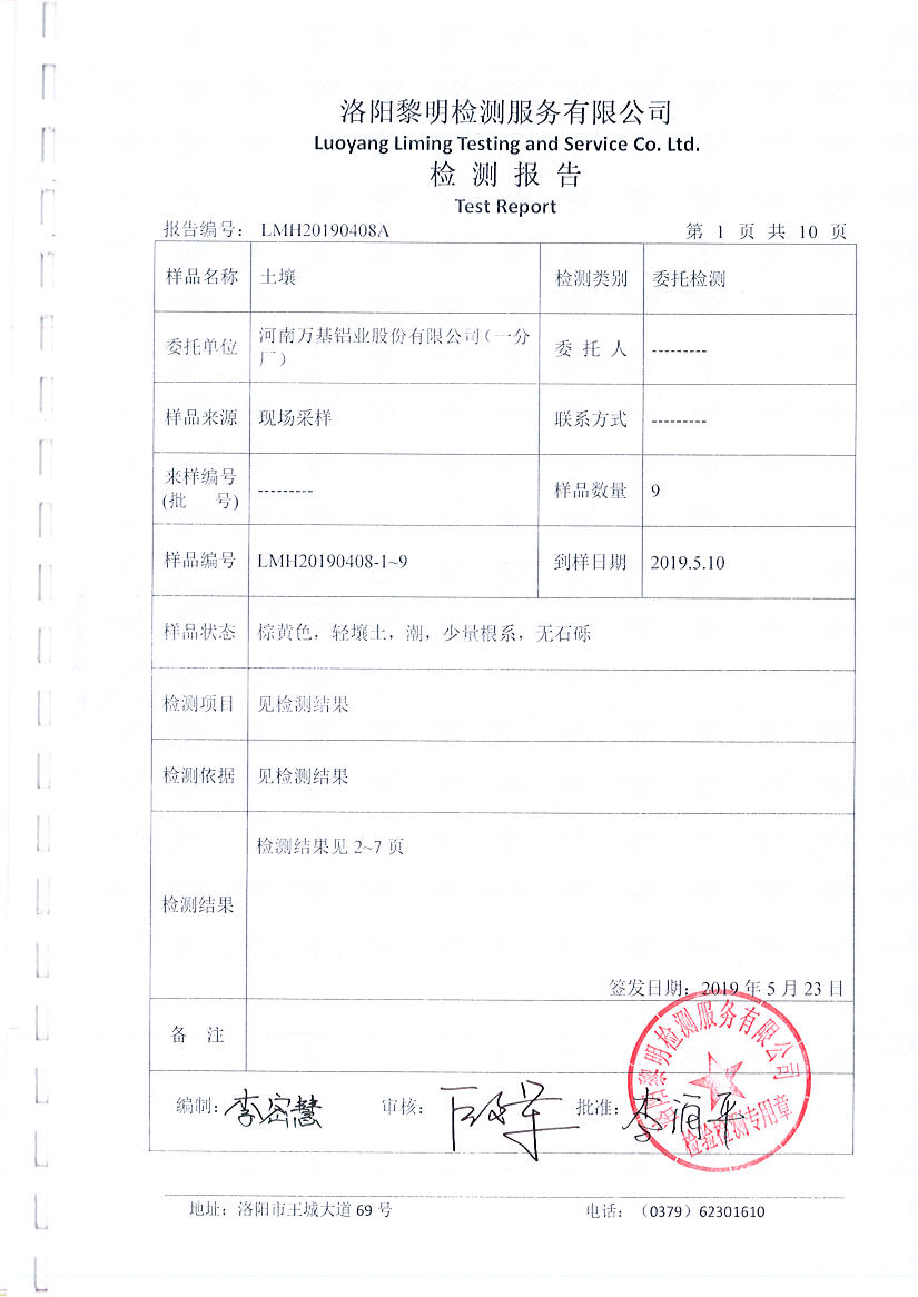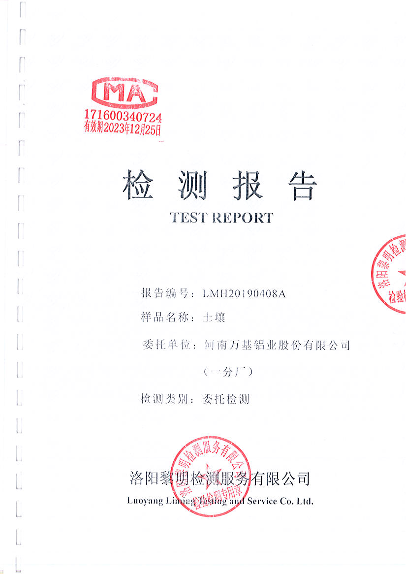河南万基铝业股份有限公司(一分厂)土壤检测报告公示