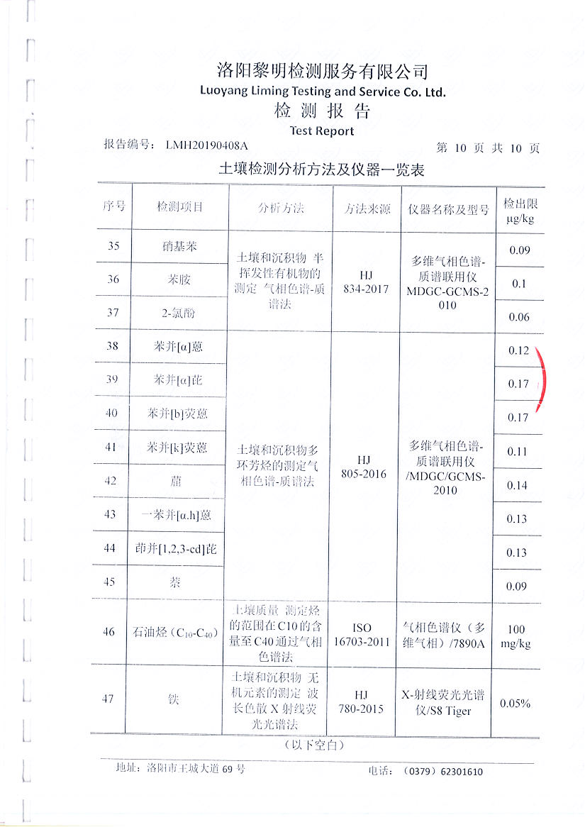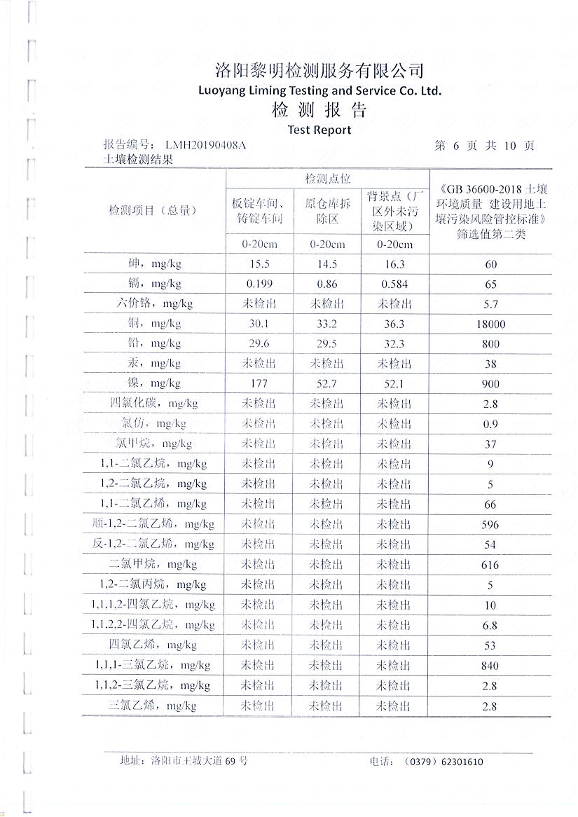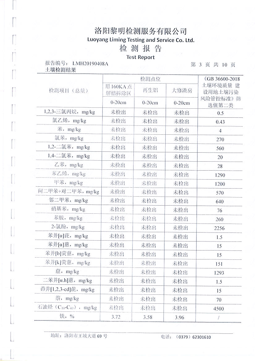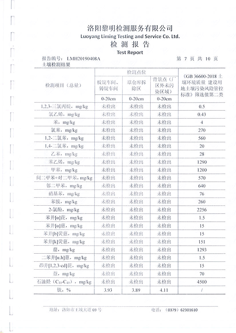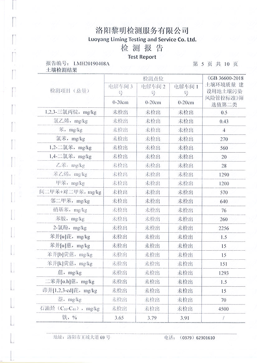 河南万基铝业股份有限公司(一分厂)土壤检测报告公示