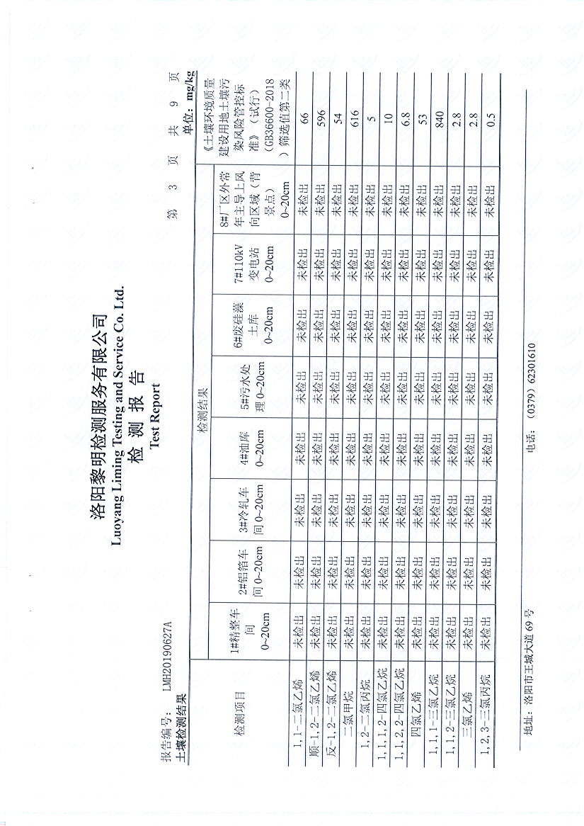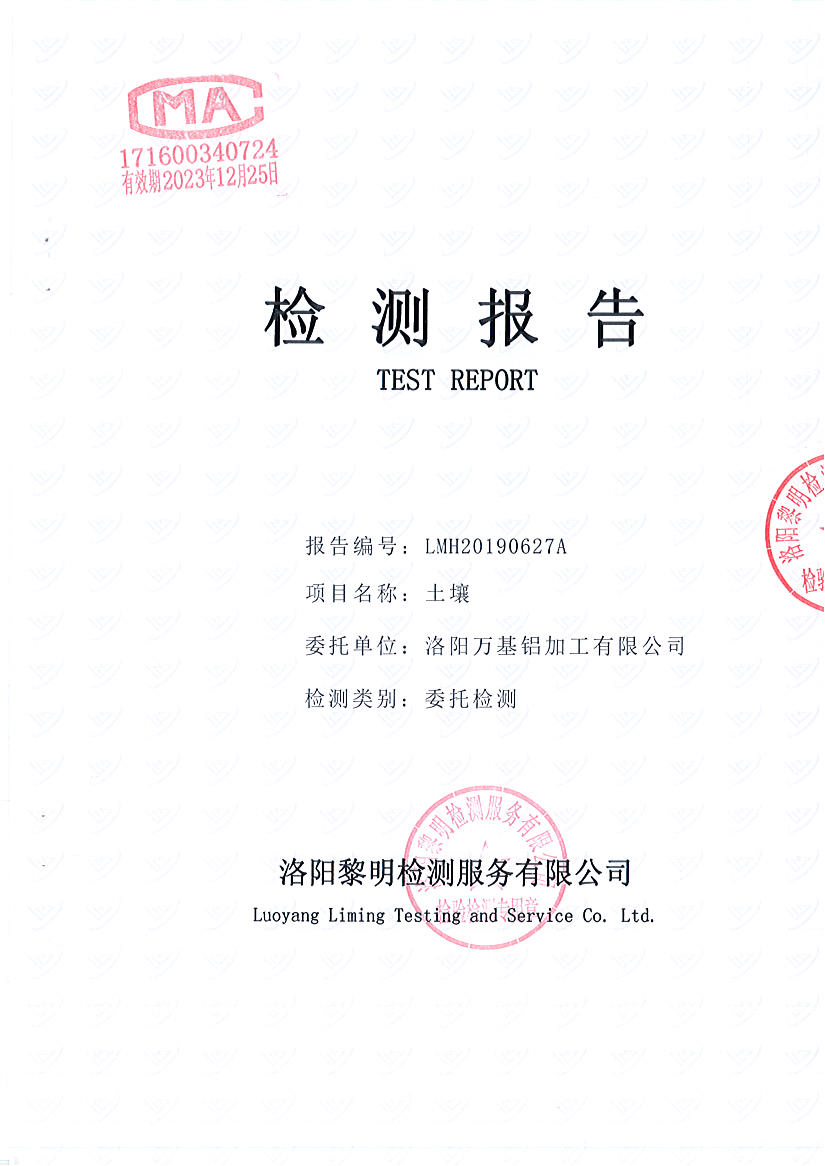 洛阳万基铝加工有限公司2019年土壤检测报告