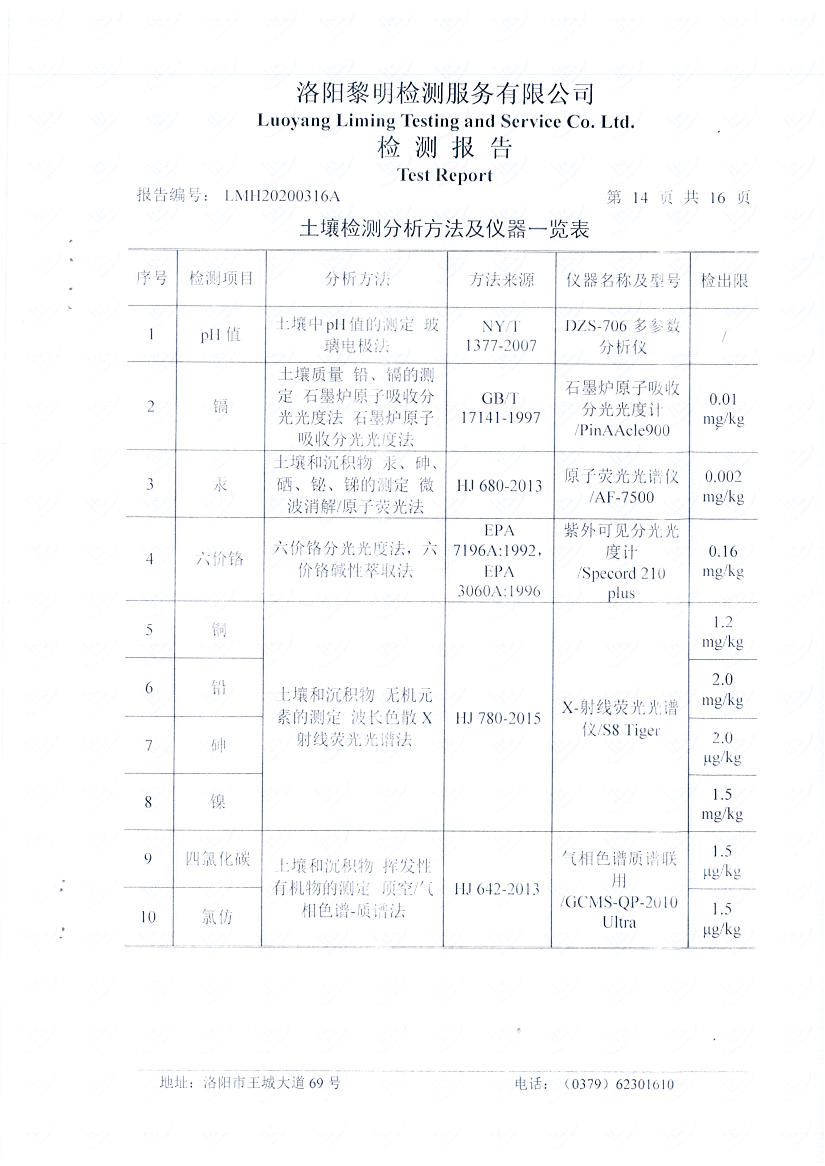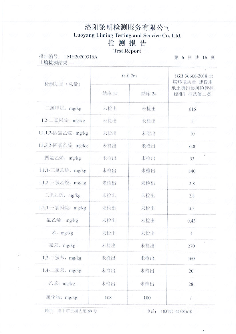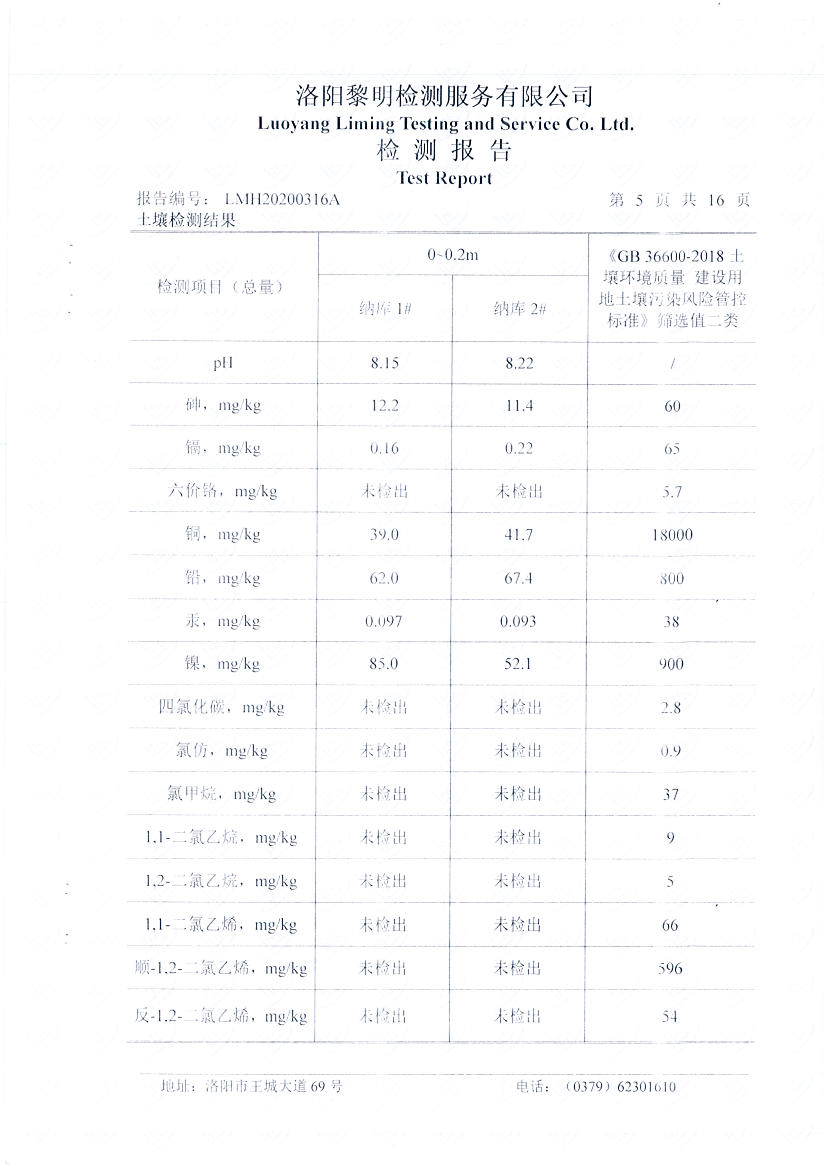 洛阳万基金属钠有限公司2020土壤自行检测报告