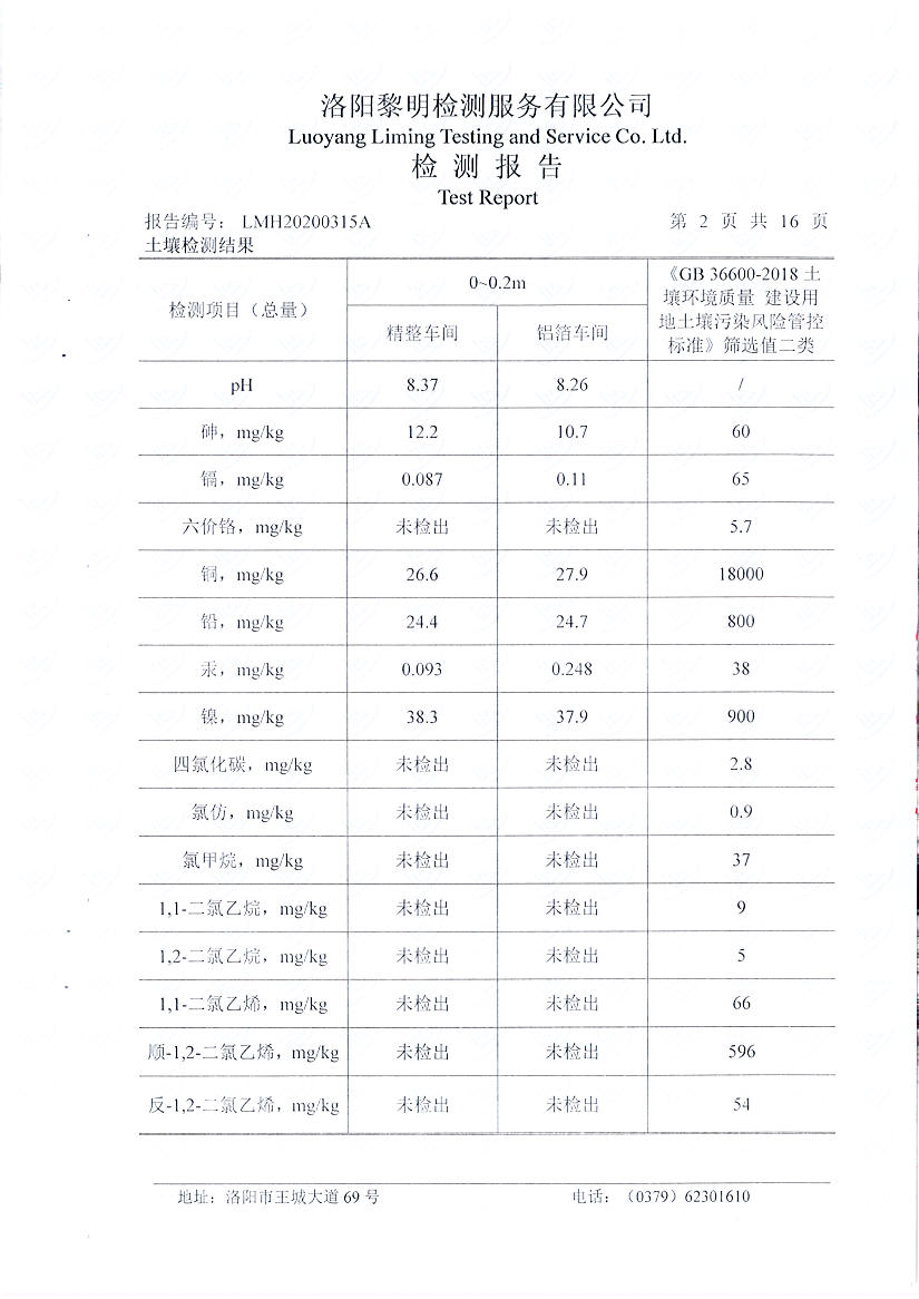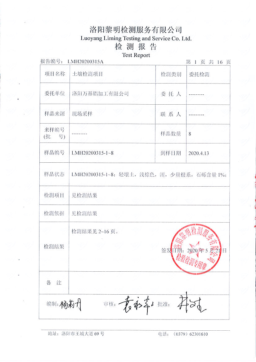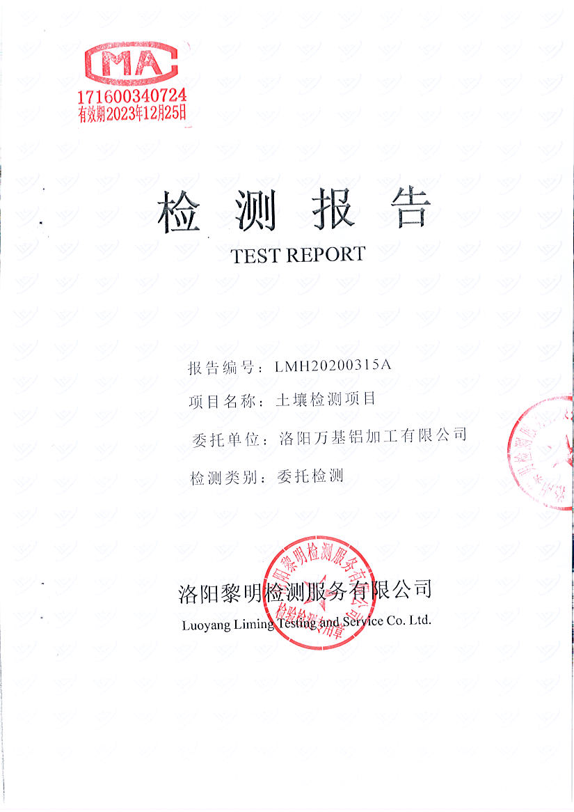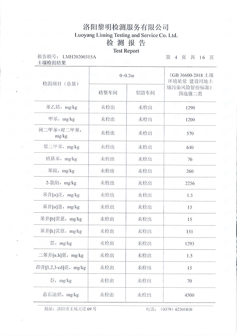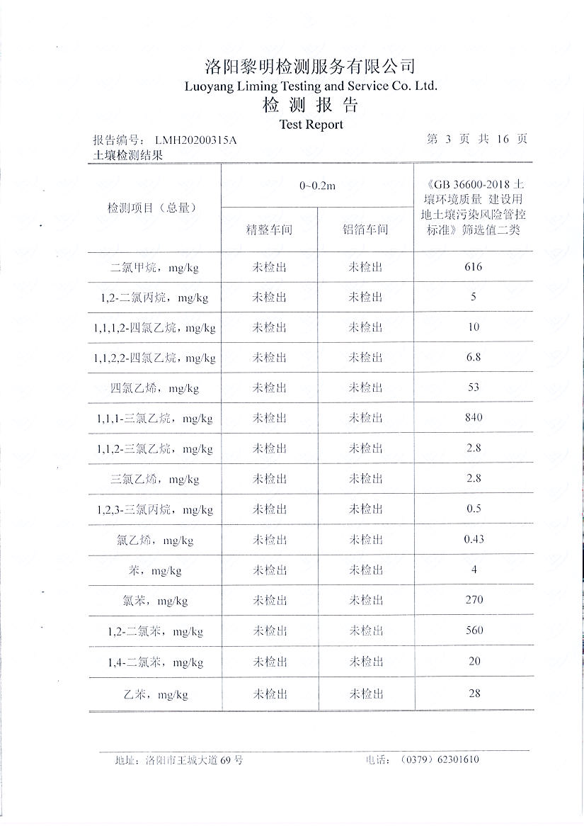 洛阳万基铝加工有限公司2020土壤自行检测报告
