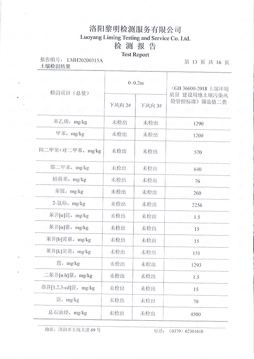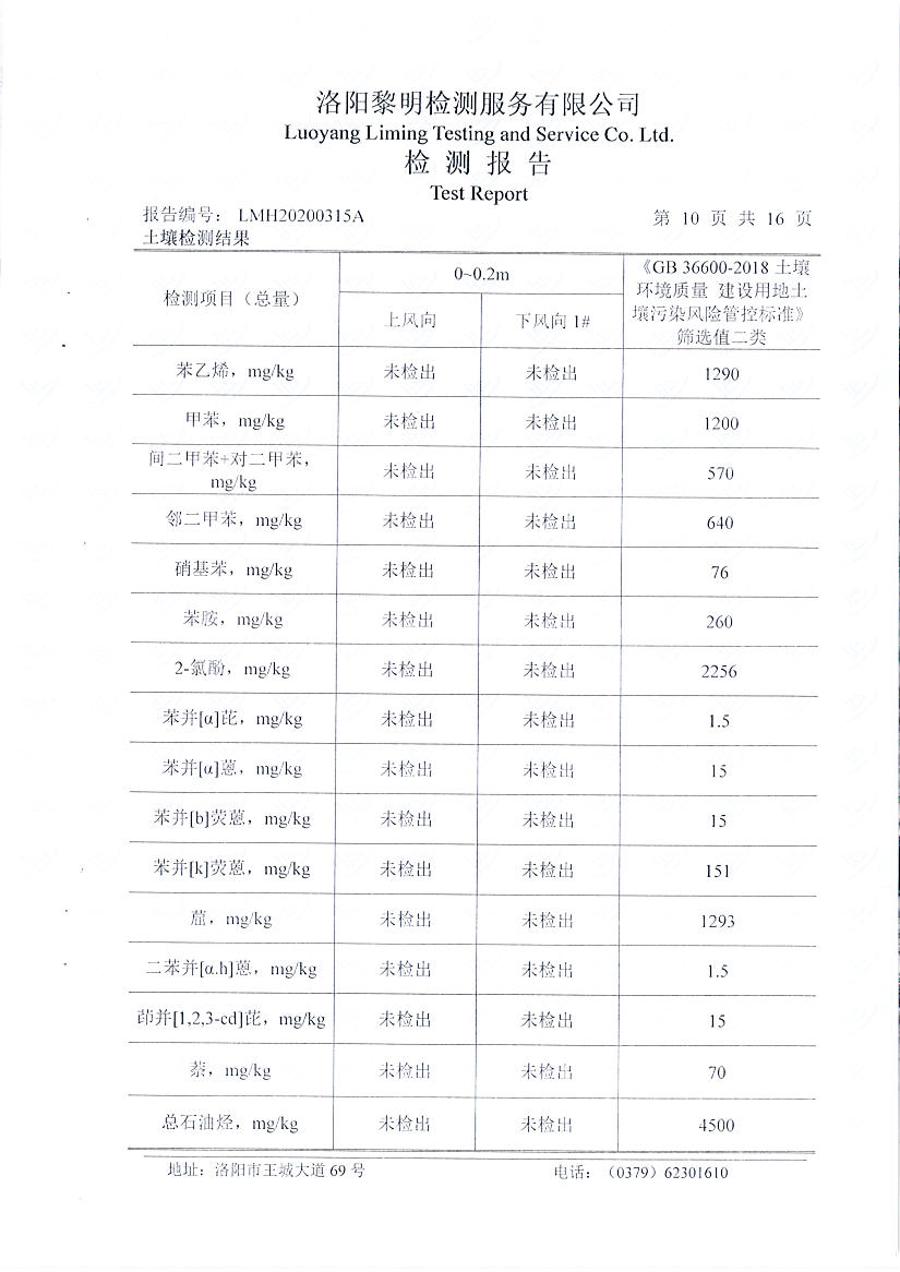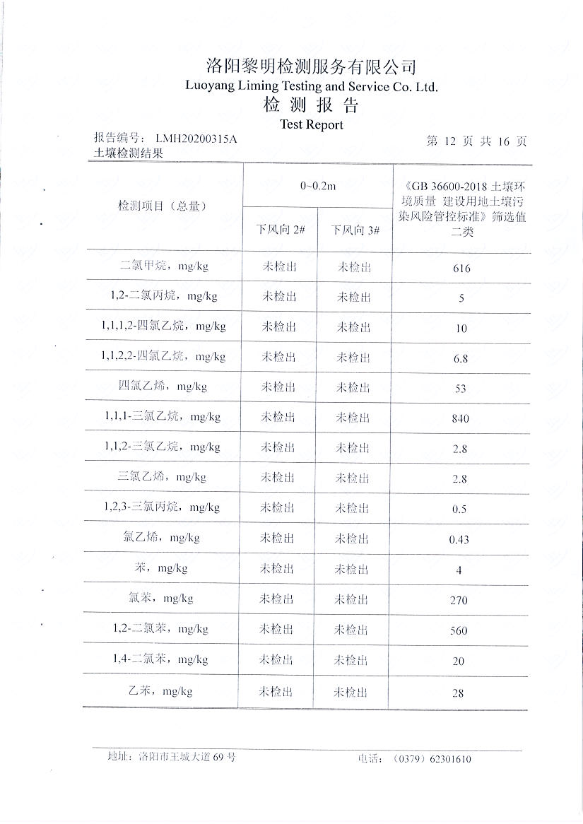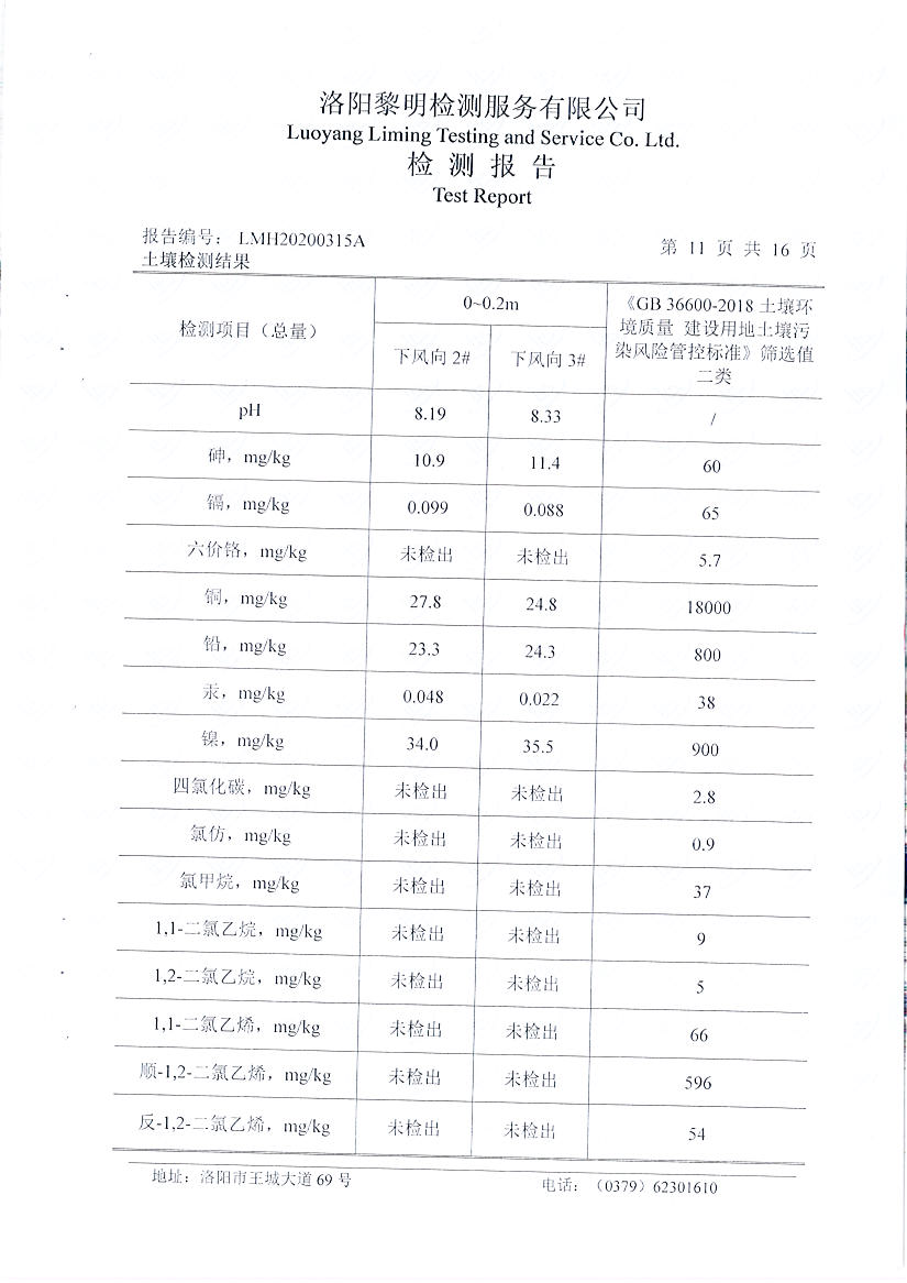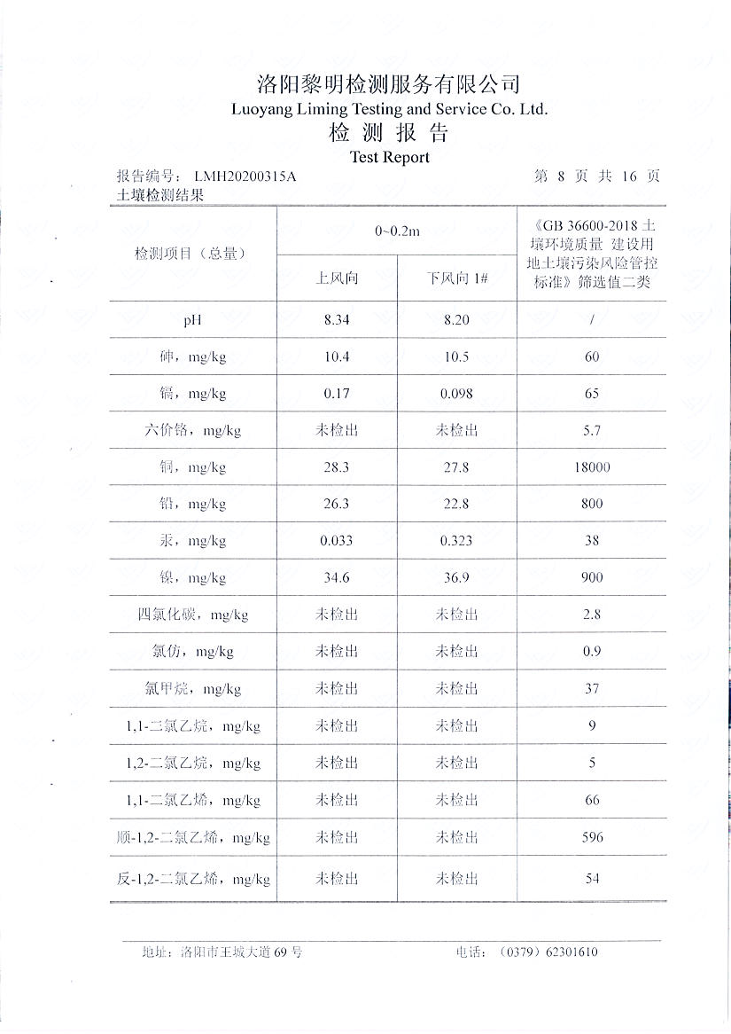 洛阳万基铝加工有限公司2020土壤自行检测报告