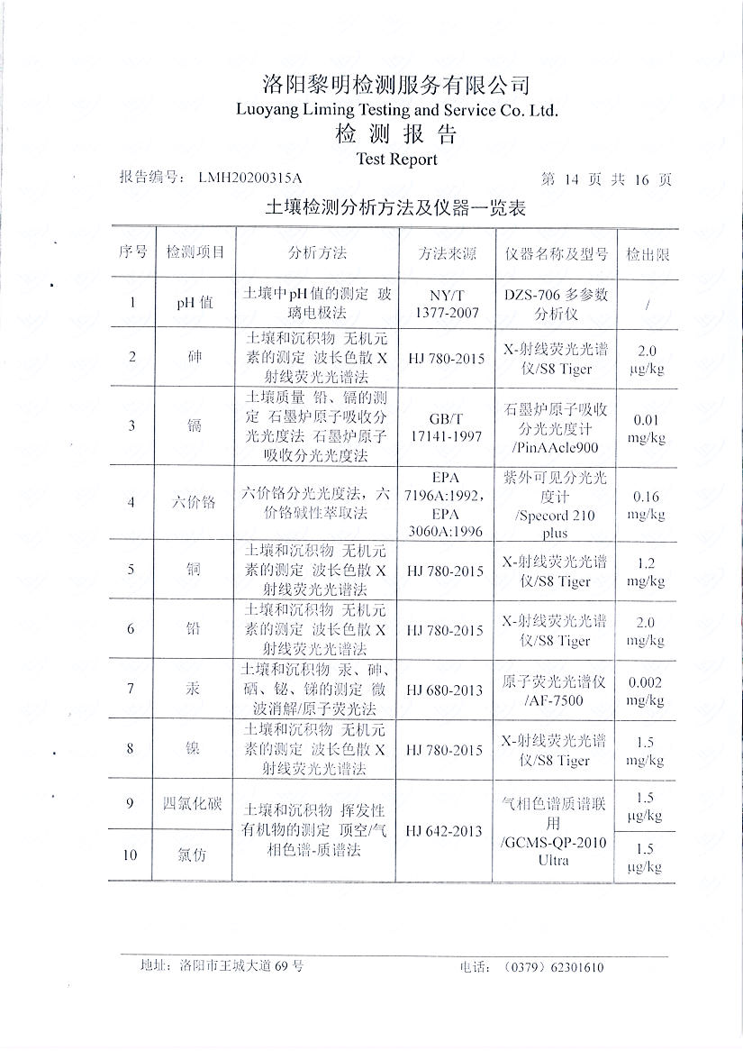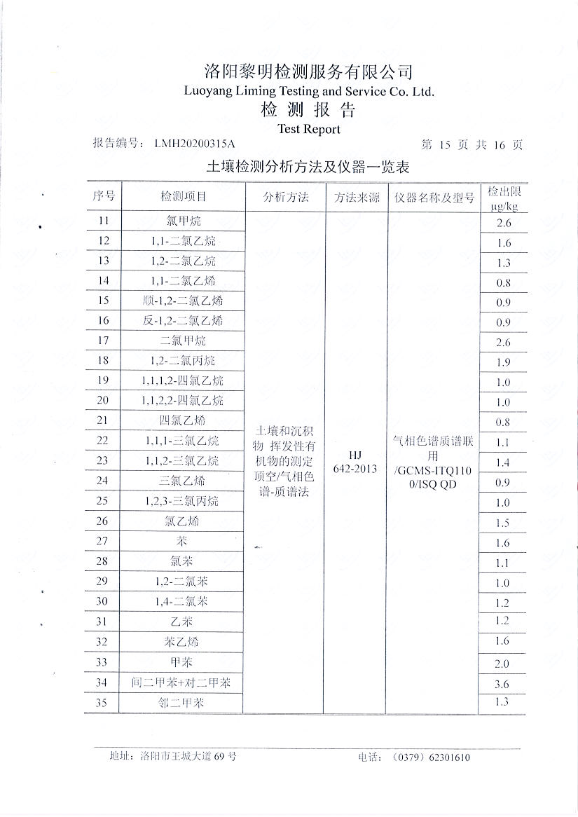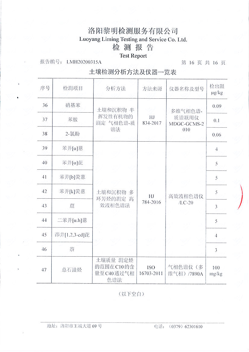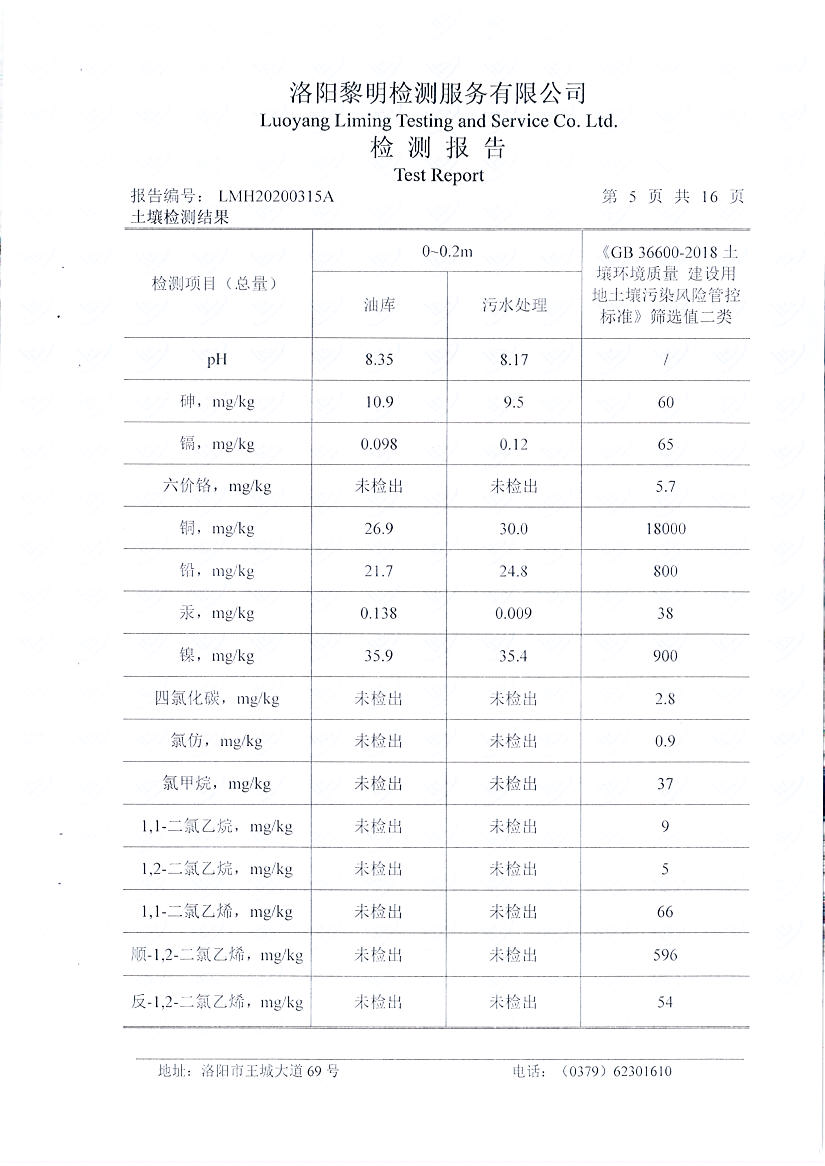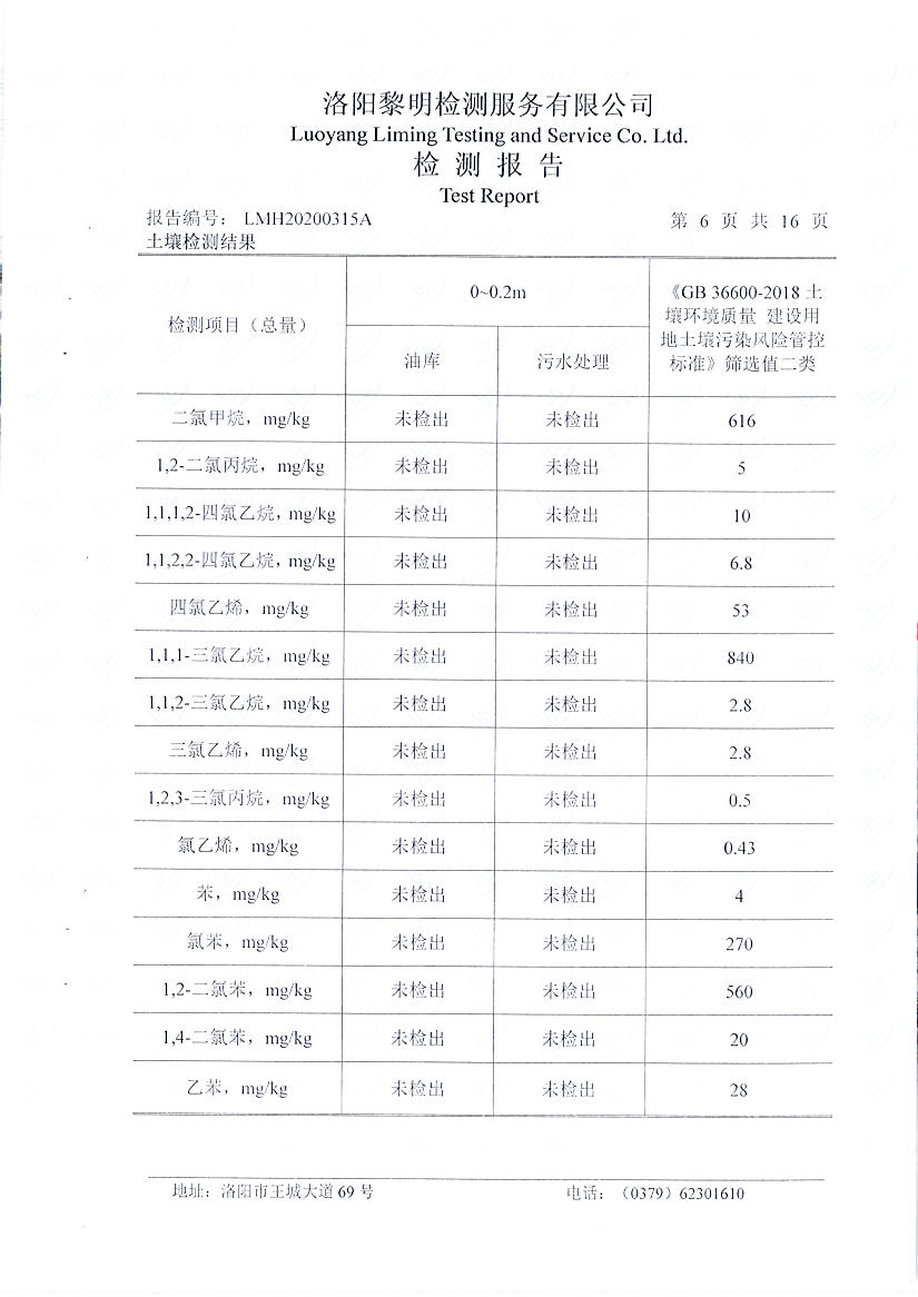 洛阳万基铝加工有限公司2020土壤自行检测报告