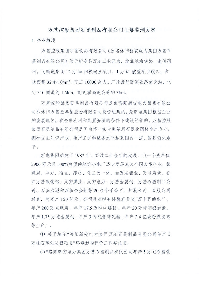 万基控股集团石墨制品有限公司2020土壤自行监测方案