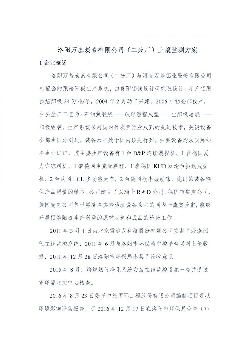 洛阳万基炭素有限公司(二分厂)2020土壤自行监测方案